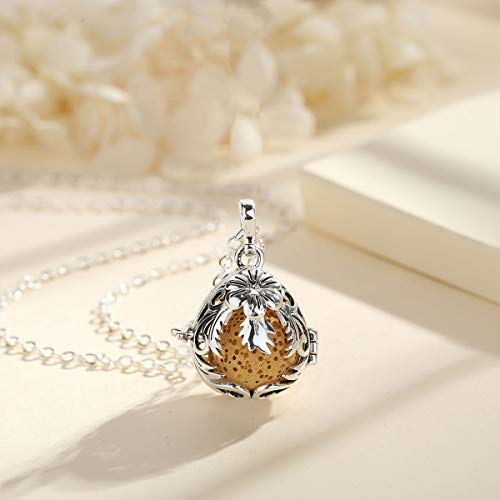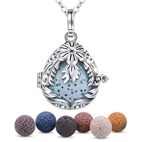 Eudora Collana con diffusore di Oli Essenziali per aromaterapia con Pietre laviche Gioielli con Ciondolo Medaglione per Donna Ragazza con 7 Pezzi di Pietra lavica e Catena da 24 Pollici