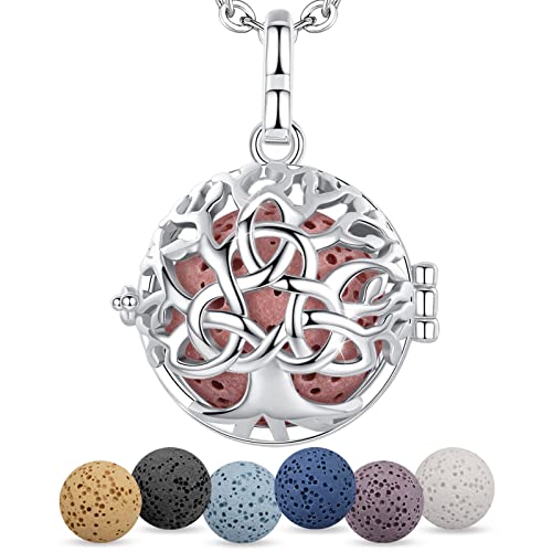 EUDORA Harmony Ball Collana Aromaterapia Diffusore di oli essenziali per le donne Collana albero della vita Ciondolo Gioielli per ragazze Regalo con 7 pezzi di pietra lavica
