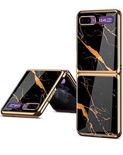 EUDTH Galaxy Z Flip Cover, Ultra Sottile Ibrida Cover Rigida PC Placcatura + Custodia Posteriore in Vetro Temperato 9H Protettiva Antiurto Case per Samsung Galaxy Z Flip 6.7" - Nero Oro