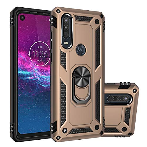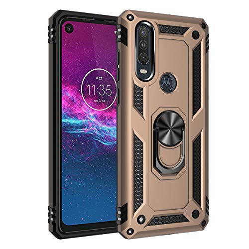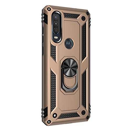 EUDTH Motorola One Action Cover, Dual Layer Ibrida 2 in 1 PC + TPU Armatura Robusta con Kickstand Custodia Protettiva Antiurto Caso per Motorola One Action 6.3" -Oro