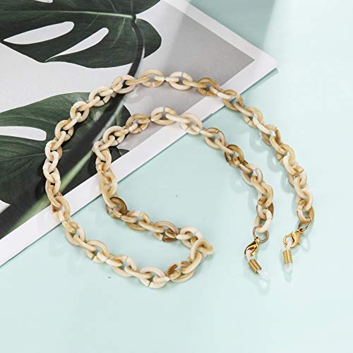 EUEAVAN, catena per occhiali da sole in acrilico con catena per occhiali da sole, da donna, alla moda, cinturino di fissaggio per occhiali (bianco e marrone)
