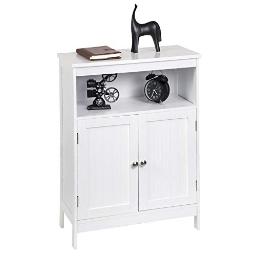 EUGAD 0127WY Mobile Bagno Bianco Armadietto da Terra Mobiletto Autoportante con Ante Salvaspazio Cucina in Legno