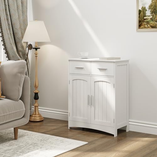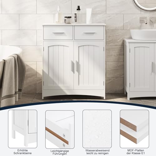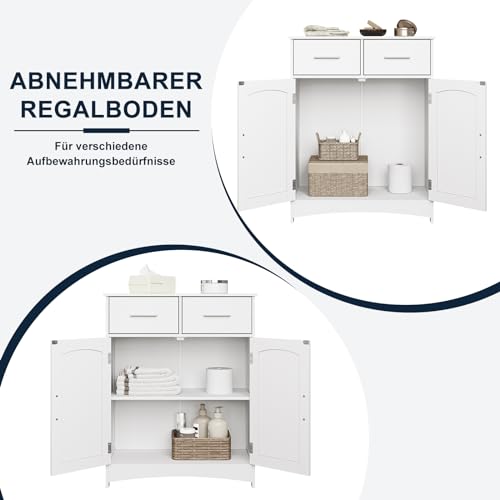 EUGAD Armadietto da Bagno, Mobile da Bagno Salvaspazio, Mobiletto da Terra con 2 Cassetti e Armadietto a 2 Ante con Ripiano Regolabile, Armadio in Legno Bianco, 60x30x76cm