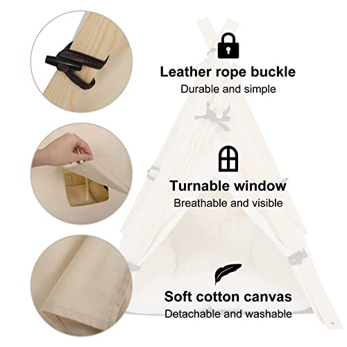 EUGAD Casetta per gatti 60x60x70cm, Tenda per cani, Tenda per Cani e Gatti con Cuscino, cani di piccola taglia come il Bulldog francese, Rimovibile e Lavabile Cuccia per Animali Domestici Bianco