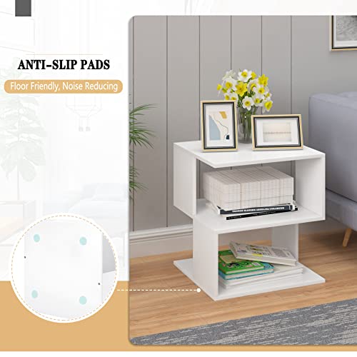 EUGAD Comodino per Camera da Letto in Legno, Tavolino Bianco Design Moderno, Mobiletto Salvaspazio per Soggiorno, Piccola Libreria a 2 Ripiani, 40x40x43,5cm, 0166ZZ