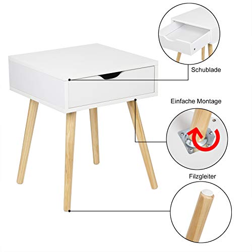 EUGAD 2x Comodino con Cassetto Tavolino Piccolo da Salotto Moderno Gambe in Legno Organizzatore da Letto Bianco 0076ZZ-2
