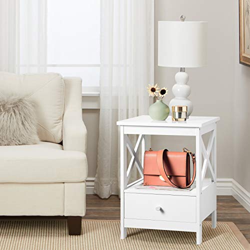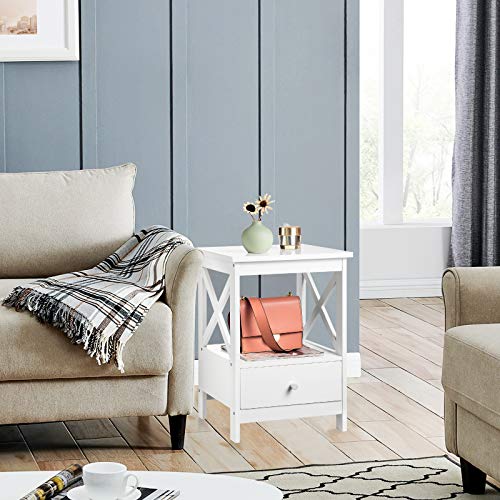 EUGAD Coppia Comodino Bianco a Due Ripiani Tavolino da Divano con Cassetto Multiuso per Cameretta Soggiorno 0108ZZ-2