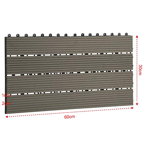 EUGAD 12 Pezzi Piastrella per Pavimento da giardino Terrazza Pavimento ad Incastro per Casa Fai da te Pavimentazione in WPC 30x60cm Caffè 0020DB-2