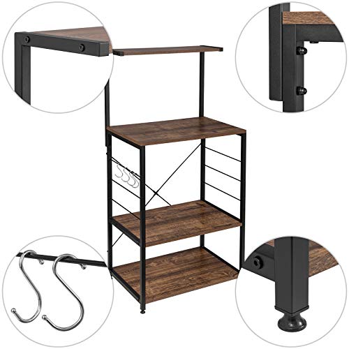Un Sacco di Spazio di Archiviazione: lo scaffale da cucina da 60x40x123cm con 4 ripiani può ospitare forni a microonde, piatti, barattoli di spezie e altri oggetti. E i 4 ganci a forma di S sono ideali per appendere cucchiai da cucina o asciugamani