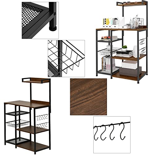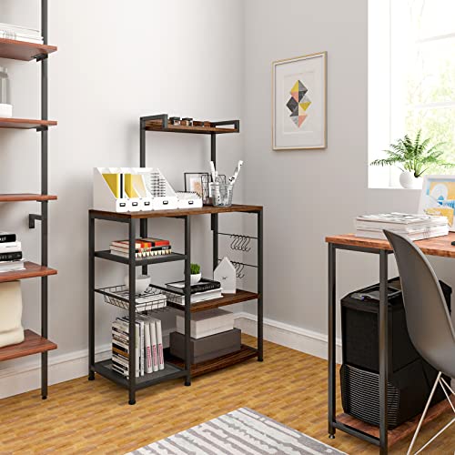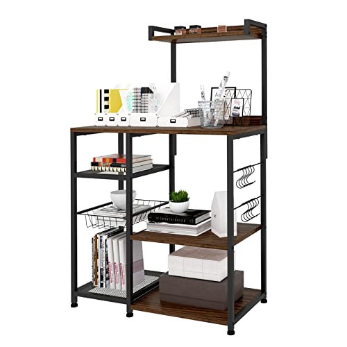 EUGAD Scaffale Mobile da Cucina,con Ripiani Portaoggetti,10 Ganci e Cesto,Supporto per Forno a Microonde Salvaspazio, per Spezie, Pentole e Padelle, Marrone Scuro+Nero 0070ZWJ
