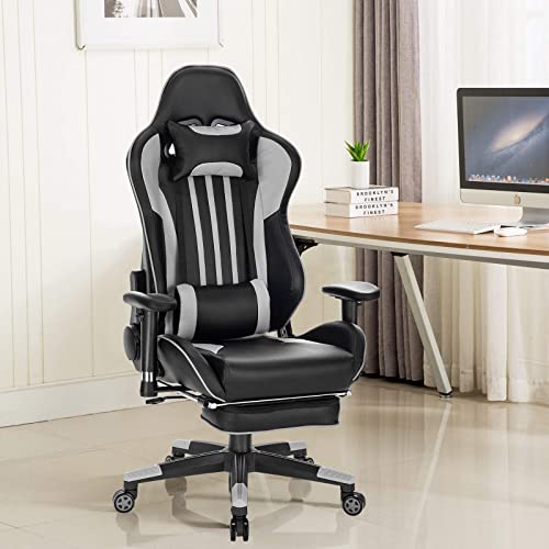 EUGAD Sedia da Gaming Gioco Poltrona da Ufficio Ergonomica con Cuscini Lombare Poggiapiedi Schienale Reclinabile di Similpelle Nero+Grigio 0074BGY