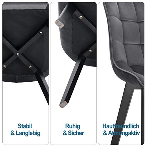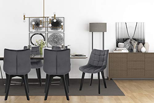 EUGAD Set di 4 Sedie Moderne da Sala Pranzo Poltroncina da Cucina Poltrona in Velluto Senza Braccioli Gambe in Legno Grigio Scuro 0654BY-4