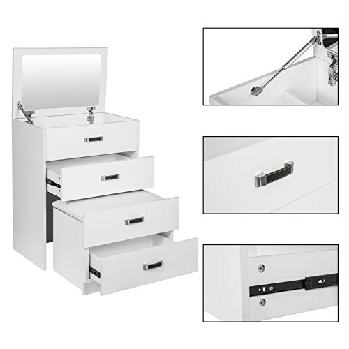 EUGAD Tavolo da toeletta con specchio e sgabello, multiuso, con specchio apribile, cassettiera con 4 cassetti, 60 x 40 x 80 cm (lunghezza x larghezza x altezza), colore: bianco