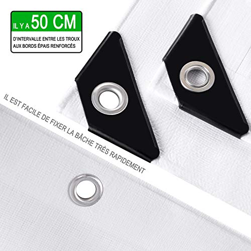 Buona qualità: Il telo premium occhiellato è realizzato in PE (280g/m²), robusto, impermeabile, resistente a polvere, anti-strappi e protezione solare. I bordi sono ben cuciti e l'anello rafforzato in metallo inox