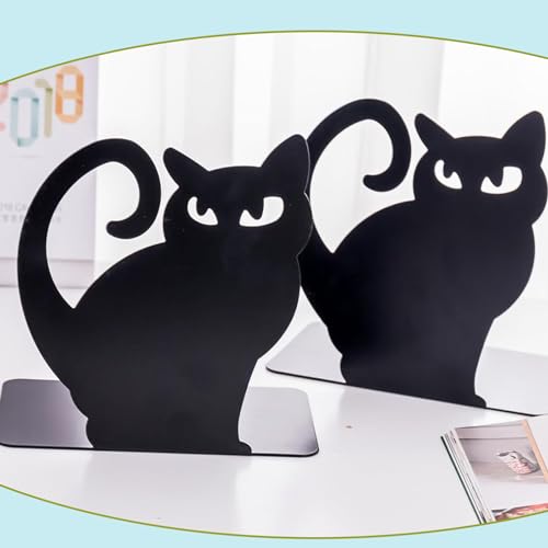 EULAPGOE 2 Pezzi Fermalibri In Metallo A Forma Di Gatto, Fermalibri In Stile Moda A Forma Di Gatto Carino, Fermalibri Pesanti Di Grandi Dimensioni, Fermalibri Da Scrivania Per Scaffali