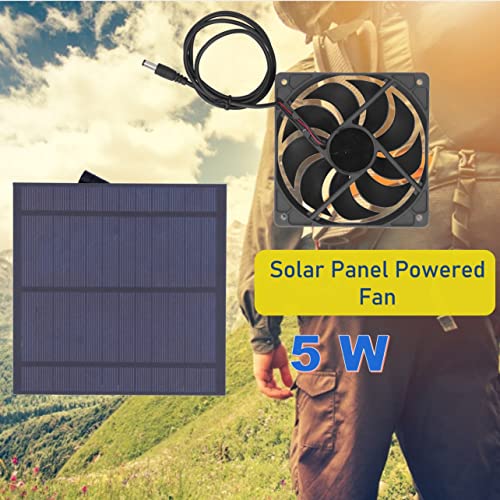 Eulbevoli Ventilatore a energia solare Eulbevoli, pannello solare in silicio monocristallino da 5W con ventola di ventilazione,bassa rumorosità, per il raffreddamento della casa dell'animale domestico