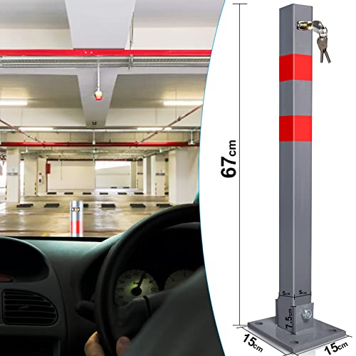 Eulenke 1X dissuasore parcheggio, pieghevole Parcheggio Barriera, Barriera Parcheggio con chiavi e strisce riflettenti, Facile da Installare blocco parcheggio, Palo Dissuasore Anti Altezza 67cm