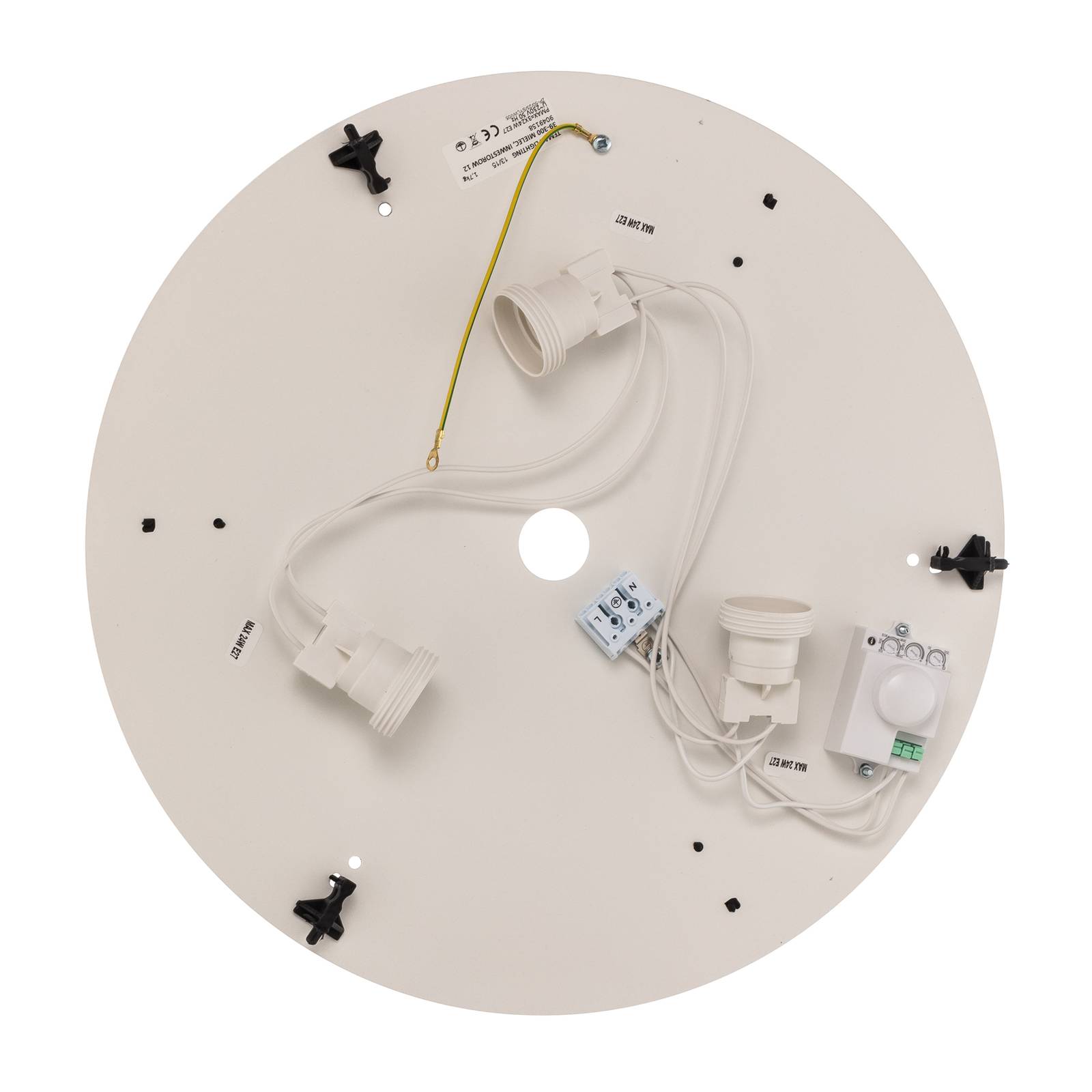 Plafoniera Cleo con rilevatore di movimento - con 3 prese E27 Dati tecnici rilevatore di movimento: - Gamma di rilevamento: 360 - Portata: max. 8 m - Regolazione del tempo: da 10 sec a 12 min - Intensità della luce: 3-2.000 lux - Altezza di installazione: 2-6 m