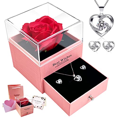 【Lussuosa scatola regalo di rose 7 in 1】: il set regalo eterno con petali di rosa include: 1 rosa eterna + 1 portagioie + 1 collana a forma di cuore + 2 orecchini + 1 sacchetto regalo + 1 biglietto di auguri. La collana è senza piombo, ipoallergenica e comoda da indossare. La confezione regalo è un ottimo regalo di compleanno per mamma, sorella, moglie, fidanzata, migliore amica.