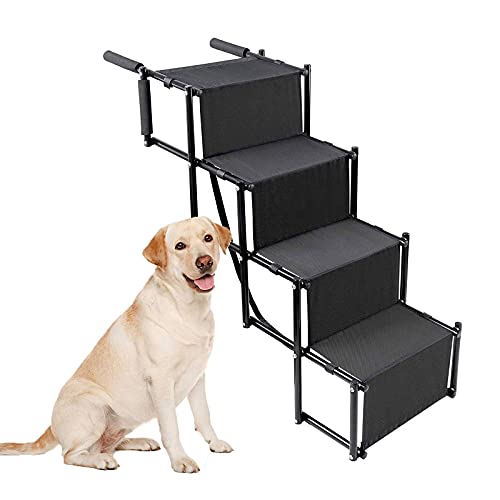 EUNEWR Gradini per Auto telescopici per Cani,Scala per Cani con 4 gradini,Tessuto Oxford Antiscivolo,rampa per Cani Pieghevole e Antiscivolo,capacità di carico Fino a 80kg,per Bagagliaio Auto/Camion
