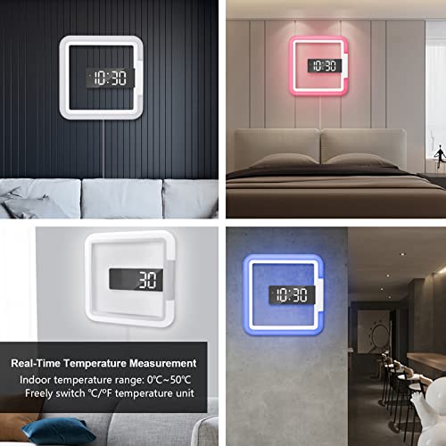 EUNEWR LED Orologio da Parete Luce 7 colori Orologio da parete digitale a LED con Sveglia e Temperatura Display Funzione,con Telecomando per Casa,Ufficio,Scuola,Decorazione