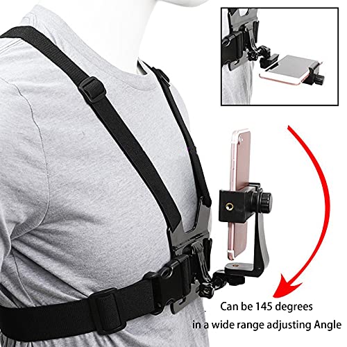 Telefono cellulare compatibile: si adatta alla maggior parte dei modelli di smartphone sul mercato. (4-5,5 pollici). Portate il vostro smartphone o la vostra GoPro e scatta video e foto con questo supporto sul petto.