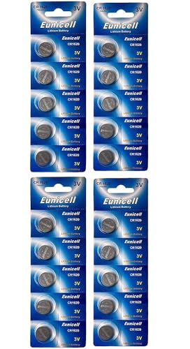 Eunicell - 20 batterie a bottone al litio CR1620, 3 V, 70 mAh (4 blister da 5 batterie)