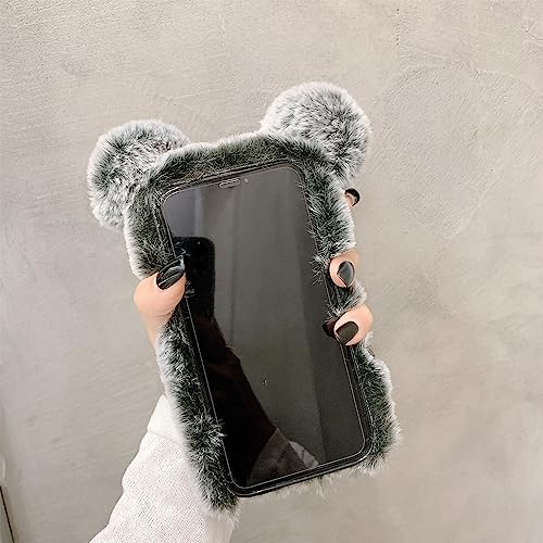 EuoDuo compatibile con Oppo A17 4G Cover Peluche Morbido Soffice Panda Orso TPU Silicone Custodia Morbida Pelliccia Protettiva Antiurto Cellulare Case - Grigio