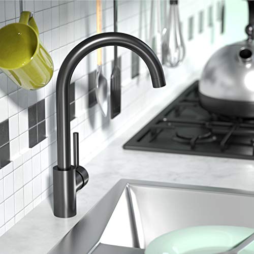 EUPYTE Rubinetto da cucina con miscelatore girevole a 360°, miscelatore monocomando per lavello in acciaio inox, per lavello