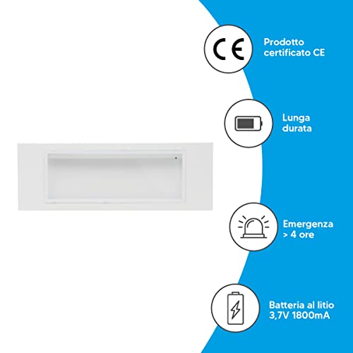 Eurekaled Lampada Emergenza LED 4,5W da muro o da incasso co la scatola in dotazione con batteria a litio più di 4 ore di accensione in emergenza