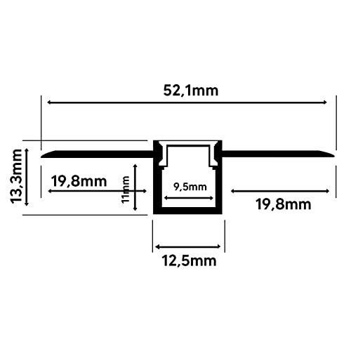 Eurekaled 5 pezzi Profilo FINO in alluminio da incasso 2mt, a scomparsa nel cartongesso, per strisce led con copertura opaca