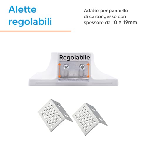 PARTICOLARITÀ: si integra perfettamente con il cartongesso, grazie alle alette regolabili in dotazione. Adatto per pannelli con spessore da 10 a 19mm.