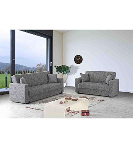 Eurobrico Divano Letto MALI con cassettone e sistema Clic Clac in tessuto Keten colore Grigio (2 POSTI - L152 x H83 x P74.)