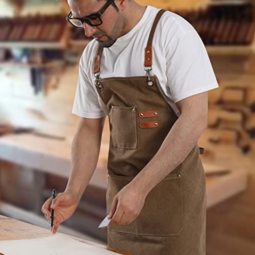 Eurobuy Grembiule da cuoco in tela di cotone con schienale incrociato grembiule con tasche regolabile da cucina grembiule da cuoco per uomo e donna, Marrone, Medium