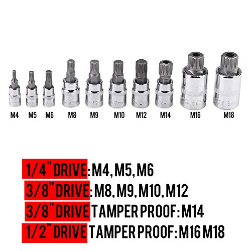 Eurobuy XZN Set di prese multiple, 10pcs Set di Chiavi a Bussola con Punta XZN Triple Square M4-M18 1/4" 3/8" 1/2" with Box