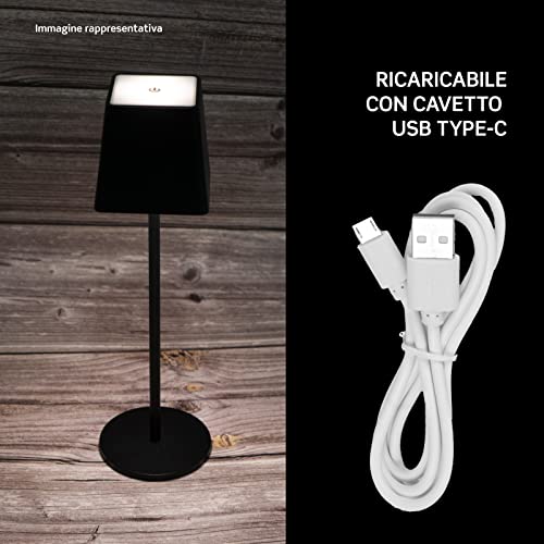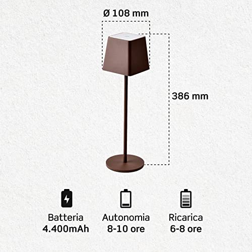Eurocali Lampada da Tavolo SENZA FILI LED Ricaricabile CORTEN Dimmerabile Comandi Touch Uso Interno ed Esterno IP54 da Casa Ristorante Bar - Batteria 4400 mAh - Luce 3000K Bianca Calda - 2W