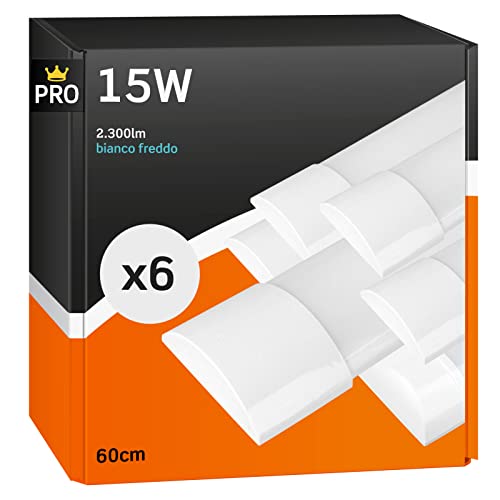Eurocali 6x Plafoniere LED Super Efficiente 15W 60cm per interno 2300 lumen - Forma: Tubo Prismatico - Luce Bianco Freddo 6500K - Fascio Luminoso 120°