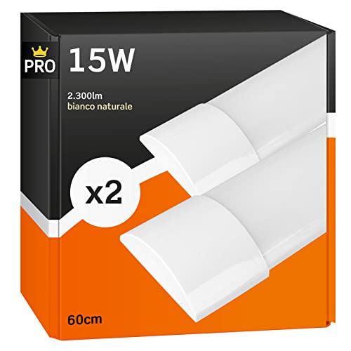 Eurocali 2x Plafoniere LED Super Efficiente 15W 60cm per interno 2300 lumen - Forma: Tubo Prismatico - Luce Bianco Naturale 4000K - Fascio Luminoso 120°