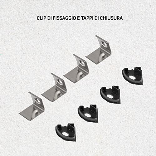 La confezione include 1 profilo da 2 metri con gli accessori di fissaggio (4 tappi e 4 clip per ogni profilo)