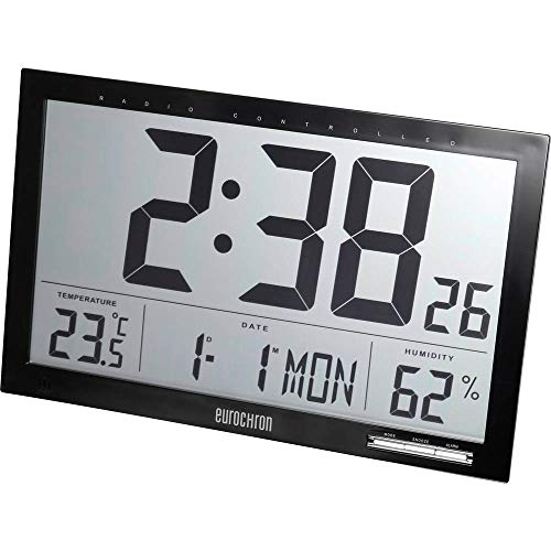EUROCHRON EFWU Jumbo 100 Radiocontrollato Orologio da parete 370 mm x 230 mm x 30 mm Nero