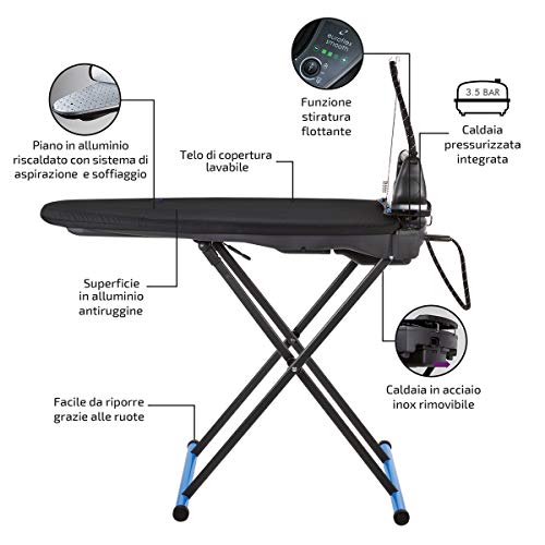 Euroflex Asse da Stiro Attiva con ferro professionale Smooth B2 blue/nero