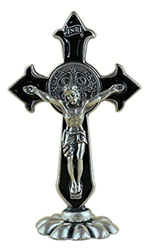 Eurofusioni Crocefisso San Benedetto INRI Nero da appoggio Placcato Argento - h 7 cm