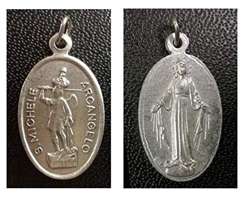 Eurofusioni Medaglia di San Michele Arcangelo e Miracolosa Maria placcata in argento, altezza 2,5 cm, 10 pezzi