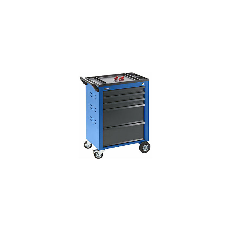Carrelli portattrezzi, 5 cassetti a bloccaggio singolo, alt. x largh. x prof. 930 x 630 x 410 mm, blu. Fornitura = montato. Larghezza totale = 630 mm. Altezza totale = 930 mm. Profondità totale = 410 mm. Numero cassetti = 5 pz. Altezza cassetti = 3x75, 2x225 mm. Colore corpo = blu genziana RAL 5010. Colore cassetti = grigio antracite RAL 7016. Estrazione cassetti = 100%. Portata per cassetto = 25 kg. Versione cassetti = guida con cuscinetti a sfera. Dotazione ruote = 2 rotelle pivottanti con fermi, 2 rotelle di scorrimento. Diametro rotelle a supporto fisso = 140 mm. Diametro rotelle pivottanti = 100 mm. Materiale telaio = lamiera d'acciaio, verniciata a polvere. Serratura = chiusura centralizzata a cilindro. Ripiano = in plastica antiurto con ripiano per minuteria. Versione cassetto = con bloccaggio singolo. Cinque cassetti a bloccaggio singolo. Elevata qualità professionale a prezzo conveniente. Cassetti scorrevoli completamente estraibili con bloccaggio singolo per evitare