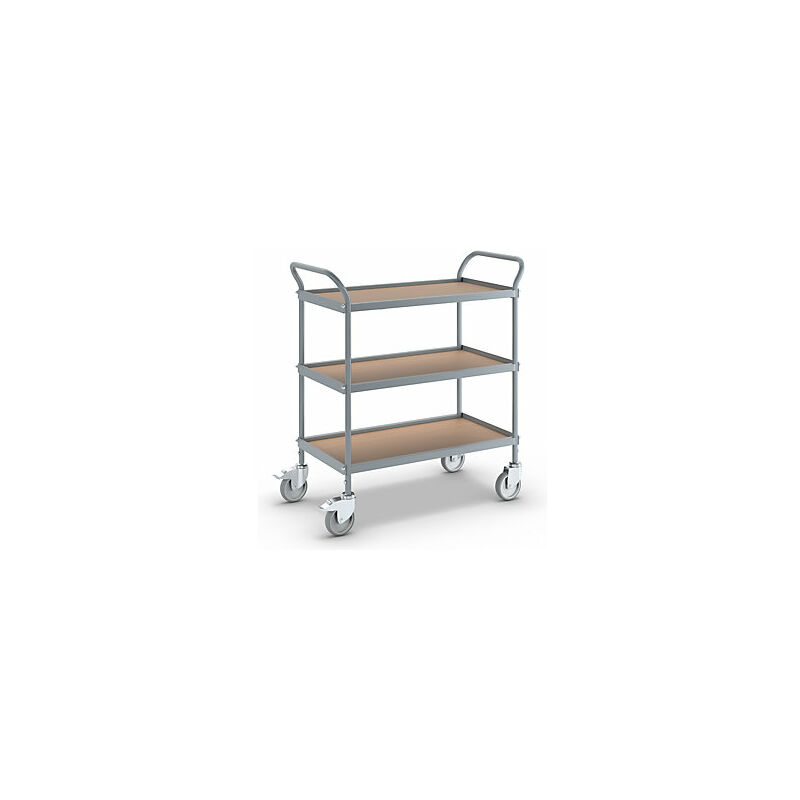 Carrello di servizio, altezza ripiani 250 mm, 3 ripiani, con 4 rotelle pivottanti, 2 con fermo doppio, Ø ruota 100 mm. Fornitura = smontato. Altezza = 855 mm. Lunghezza superficie di carico = 660 mm. Larghezza superficie di carico = 339 mm. Lunghezza = 780 mm. Altezza ripiani = 225 / 495 / 775 mm. Portata = 150 kg. Numero piani = 3 pz. Larghezza = 380 mm. Materiale telaio = tubo d'acciaio, verniciato a polvere. Colore telaio = grigio argento RAL 7001. Materiale = truciolato con verniciatura plastica. Colore superficie di carico = faggio. Numero maniglioni = 2 pz. Dotazione ruote = con 4 rotelle pivottanti, 2 con fermo doppio. Versione ruote = gomma piena antitraccia. Diametro ruote = 100 mm. Peso = 17.9 kg. Ideali per il catering. Le impugnature su entrambi i lati e le rotelle pivottanti consentono di spostarsi in modo flessibile verso il luogo di utilizzo. Le ruote antitraccia non rovinano il pavimento e non lasciano segni. Struttura in acciaio con verniciatura a polvere in grigio