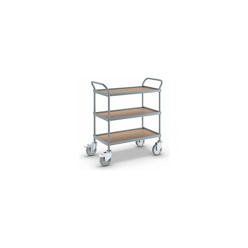 Carrello di servizio, altezza ripiani 250 mm, 3 ripiani, con 4 rotelle pivottanti, 2 con fermo doppio, Ø ruota 125 mm. Fornitura = smontato. Altezza = 855 mm. Lunghezza superficie di carico = 660 mm. Larghezza superficie di carico = 339 mm. Lunghezza = 780 mm. Altezza ripiani = 250 / 520 / 800 mm. Portata = 150 kg. Numero piani = 3 pz. Larghezza = 380 mm. Materiale telaio = tubo d'acciaio, verniciato a polvere. Colore telaio = grigio argento RAL 7001. Materiale = truciolato con verniciatura plastica. Colore superficie di carico = faggio. Numero maniglioni = 2 pz. Dotazione ruote = con 4 rotelle pivottanti, 2 con fermo doppio. Versione ruote = gomma piena antitraccia. Diametro ruote = 125 mm. Peso = 18.4 kg. Ideali per il catering. Le impugnature su entrambi i lati e le rotelle pivottanti consentono di spostarsi in modo flessibile verso il luogo di utilizzo. Le ruote antitraccia non rovinano il pavimento e non lasciano segni. Struttura in acciaio con verniciatura a polvere in grigio