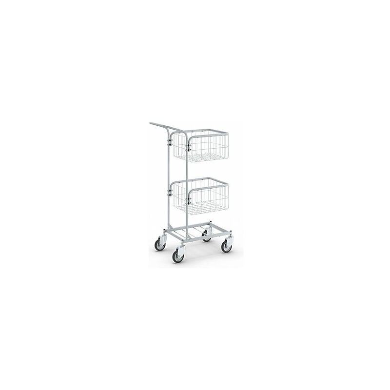 Carrello per ufficio KOMPAKT, telaio color grigio argento, 4 rotelle pivottanti, Ø 100 mm. Fornitura = smontato. Lunghezza superficie di carico = 400 mm. Larghezza superficie di carico = 300 mm. Lunghezza = 630 mm. Larghezza = 360 mm. Altezza = 1090 mm. Numero ripiani = 2 pz. Portata per piano = 15 kg. Materiale telaio = tubo d'acciaio, verniciato a polvere. Colore telaio = grigio argento RAL 7001. Dotazione ruote = con 4 rotelle pivottanti. Diametro ruote = 100 mm. Numero maniglioni = 1 pz. Numero piani = 2 pz. Tipo di prodotto = carrelli di smistamento documenti. Ideali per lo smistamento della posta. Ideali per mantenere l'ordine. Ideali per le operazioni di suddivisione. Dimensioni cestini: lunghezza x larghezza x altezza 400 x 300 x 210 mm. Portata cesto 15 kg. Ruote con battistrada in gomma piena antitraccia. Viene consegnato smontato. Montaggio semplice.