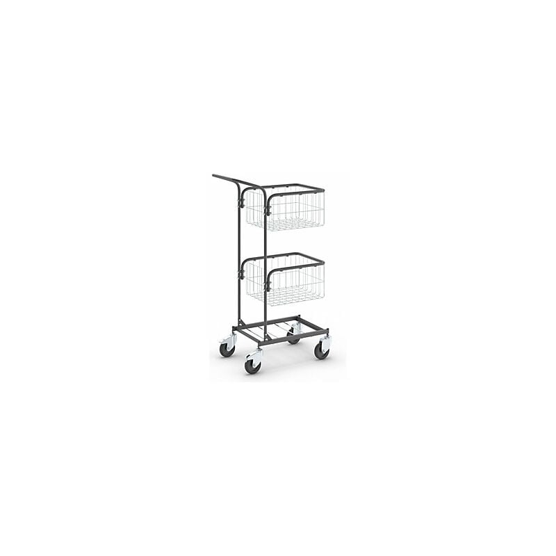 Carrello per ufficio KOMPAKT, telaio color nero notte, 4 rotelle pivottanti, 2 con fermo doppio, Ø ruote 100 mm. Fornitura = smontato. Lunghezza superficie di carico = 400 mm. Larghezza superficie di carico = 300 mm. Lunghezza = 630 mm. Larghezza = 360 mm. Altezza = 1090 mm. Numero ripiani = 2 pz. Portata per piano = 15 kg. Materiale telaio = tubo d'acciaio, verniciato a polvere. Colore telaio = nero notte RAL 9005. Dotazione ruote = con 4 rotelle pivottanti, 2 con fermo doppio. Diametro ruote = 100 mm. Numero maniglioni = 1 pz. Numero piani = 2 pz. Tipo di prodotto = carrelli di smistamento documenti. Ideali per lo smistamento della posta. Ideali per mantenere l'ordine. Ideali per le operazioni di suddivisione. Dimensioni cestini: lunghezza x larghezza x altezza 400 x 300 x 210 mm. Portata cesto 15 kg. Ruote con battistrada in gomma piena antitraccia. Viene consegnato smontato. Montaggio semplice.