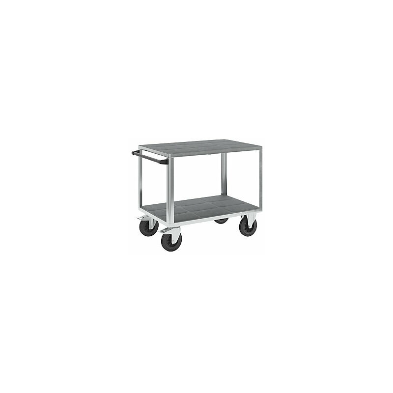 Carrello di montaggio, 2 ripiani in plastica, pianale 1050 x 700 mm, telaio zincato. Fornitura = montato. Numero piani = 2 pz. Lunghezza superficie di carico = 1050 mm. Larghezza superficie di carico = 700 mm. Colore = zincatura elettrolitica. Materiale superficie di carico = plastica. Altezza di lavoro = 895 mm. Portata = 500 kg. Altezza ripiani = 275 / 895 mm. Lunghezza = 1128 mm. Larghezza = 700 mm. Altezza = 895 mm. Tipo di prodotto = carrelli di montaggio con 2 ripiani. Dotazione ruote = 2 rotelle pivottanti con fermo doppio, 2 rotelle a supporto fisso. Versione ruote = gomma piena. Diametro ruote = 200 mm. Cuscinetti ruota = cuscinetto a rulli. Numero ripiani = 2 pz. Portata 500 kg. Ogni cosa resta al suo posto grazie ai ripiani in plastica antiscivolo. Altezza di lavoro ergonomica per lavorare oggetti ingombranti e pesanti. Gli angoli e gli spigoli arrotondati permettono di lavorare in sicurezza, senza lesioni e danni. Superfici di carico facili da sostituire fissate in modo