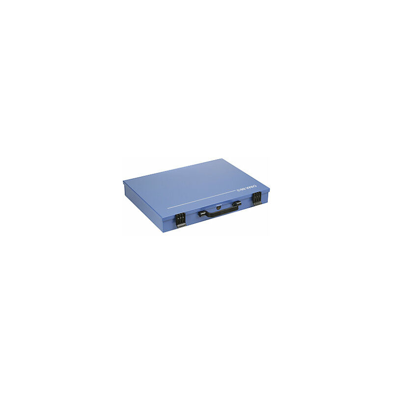 Valigetta in lamiera d'acciaio per minuteria, cassette modulari incl., alt. x lungh. x largh. 66 x 472 x 340 mm. Fornitura = montato. Materiale = lamiera d'acciaio, verniciata a polvere, lamiera d'acciaio, materiale espanso interno. Lunghezza esterna = 172 mm. Larghezza esterna = 340 mm. Altezza esterna = 50 mm. Colore = blu chiaro RAL 5012. Peso = 3.9 kg. Versione = senza fondo estraibile. Numero scomparti = 18 pz. Modello cassettine = 2 pz. 62x167x117 mm, 8 pz. 62x83x117 mm, 8 pz. 62x83x57 mm. Lamiera d'acciaio spessa 0,75 mm, verniciatura a polvere in blu chiaro RAL 5012. Cerniera a tutta larghezza. Impugnatura ergonomica e chiusure in plastica. Blocco di sicurezza centrale contro l'apertura involontaria. Materiale espanso nel coperchio. Valigetta portaminuteria con cassette modulari.